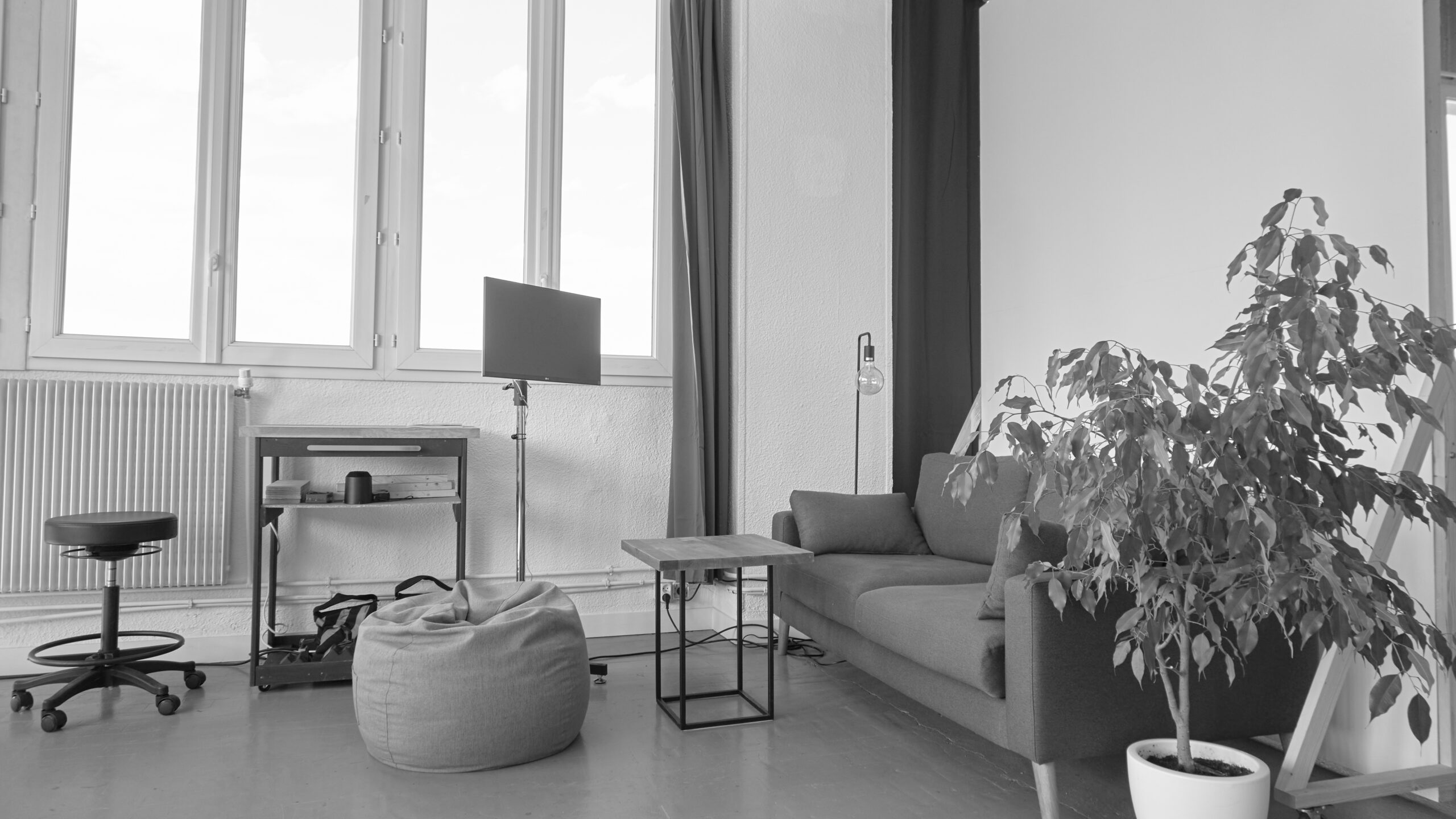 Le Studio Zilizou est un grand studio aux portes de Paris, composé d’un grand plateau unique de 100m2 avec une hauteur sous plafond de 4 mètres.Situé au 4e et dernier étage, disposant d’une double exposition Nord-Ouestavec 21 mètres de baies vitrés entièrement occultable.